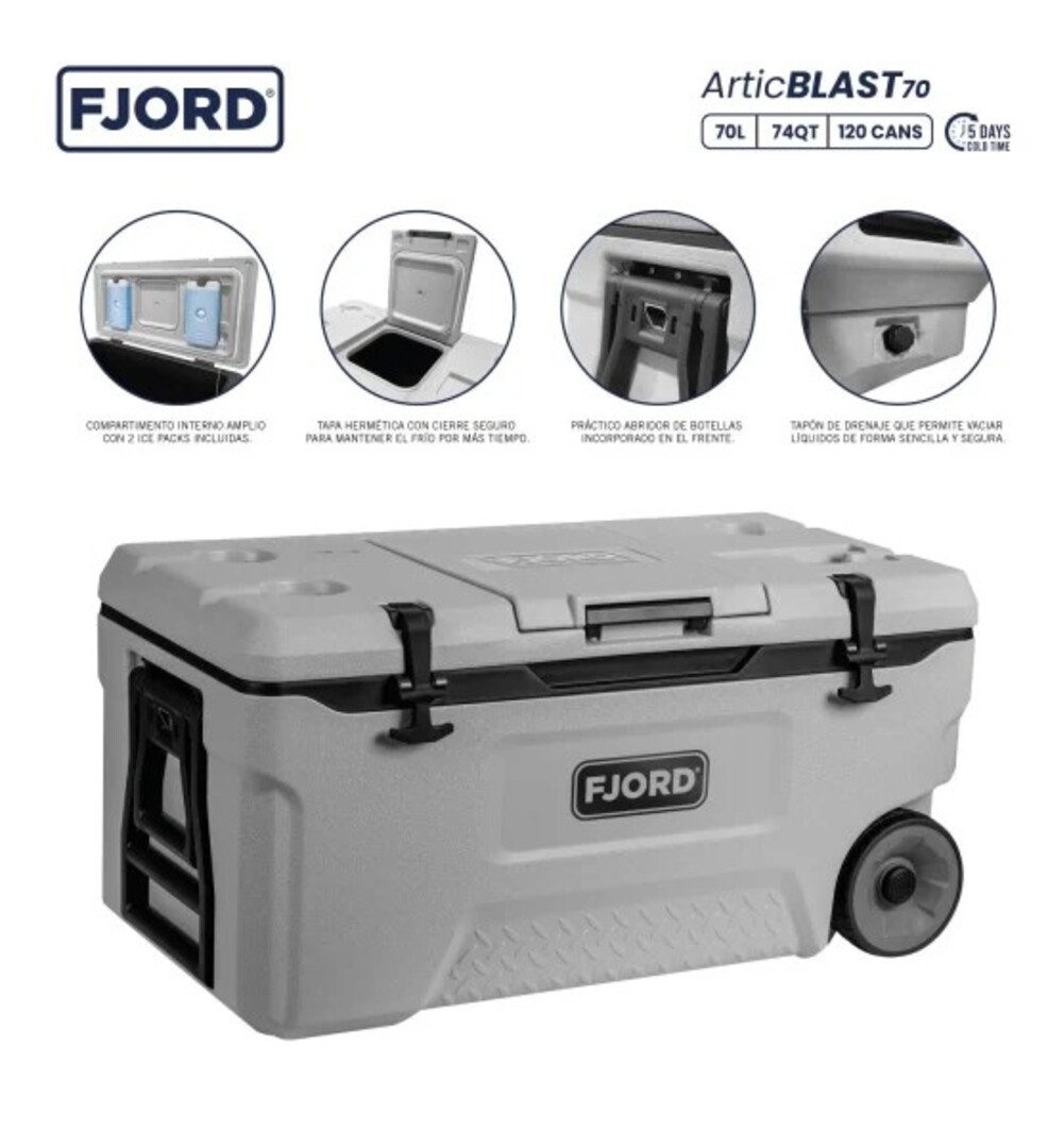 El cooler valha 70l con ruedas fjord con su cuerpo soplado de alta resistencia y aislamiento ofrece una excelente calidad-precio.