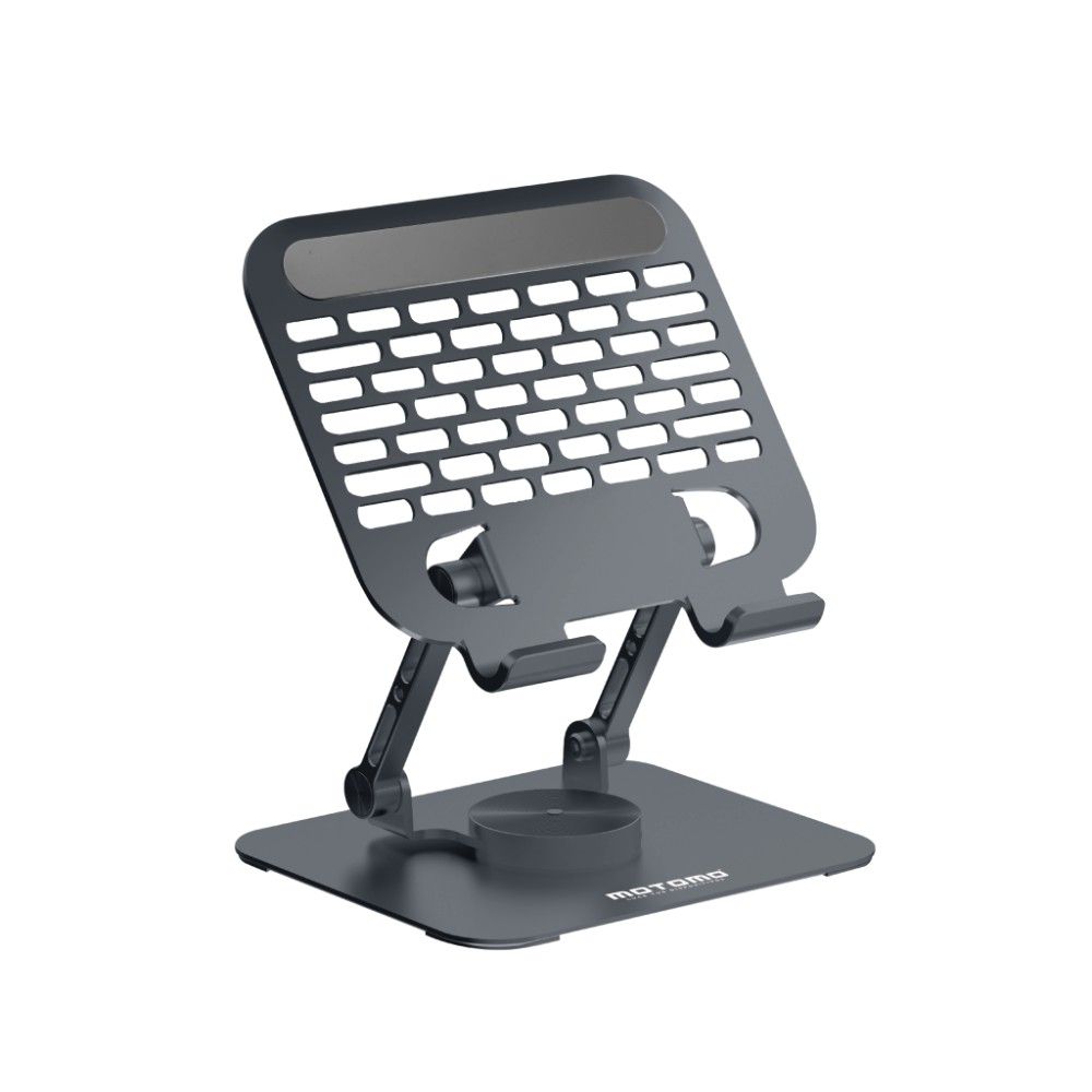 Soporte universal ajustable para celulares y tablets de hasta 12.9 pulgadas. Su diseño con giro 360° permite orientarlo en vertical u horizontal, ideal para videollamadas, estudio, trabajo o entretenimiento. Fabricado con acabado grafito, ofrece estabilidad y portabilidad para cualquier espacio.